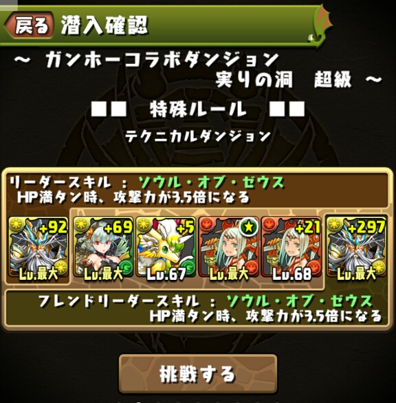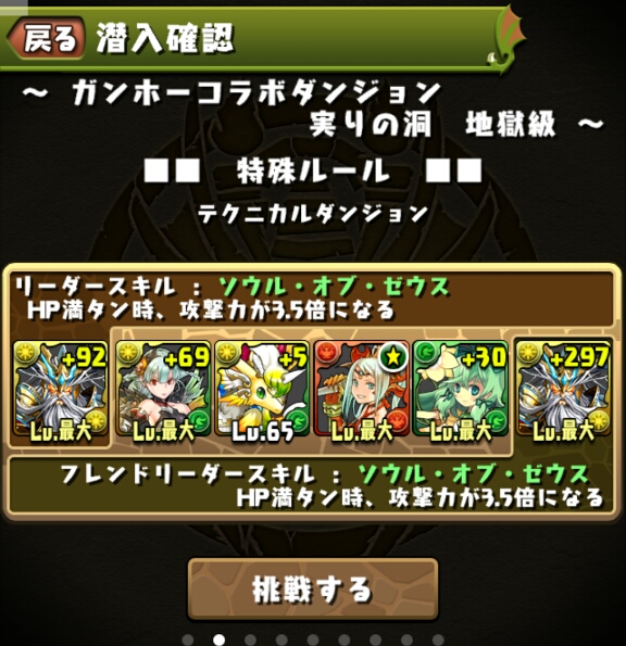 -パズドラ- ガンホーコラボダンジョンを、ゼウスパで。