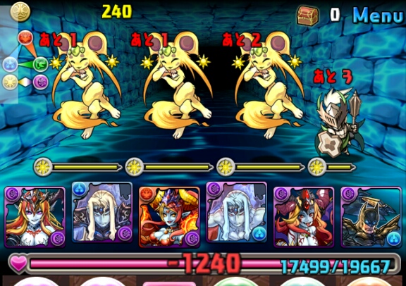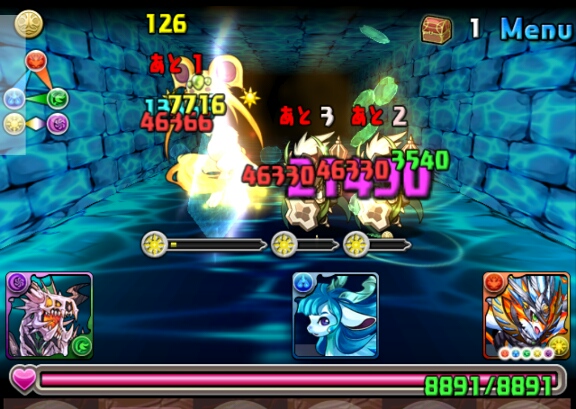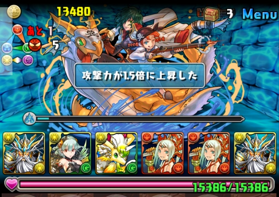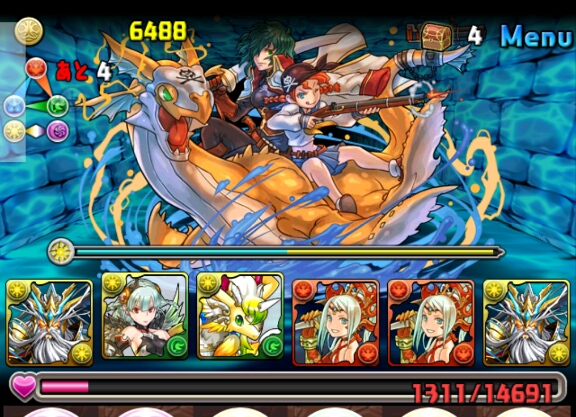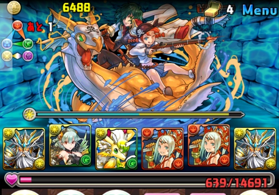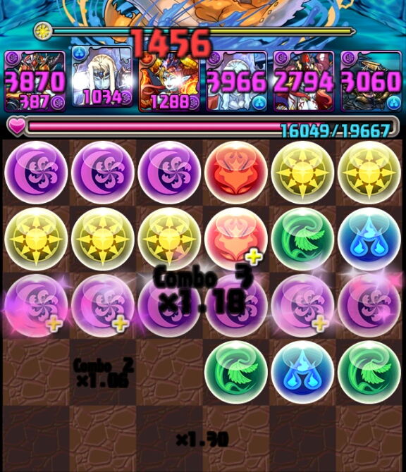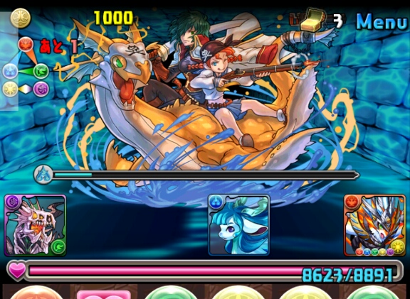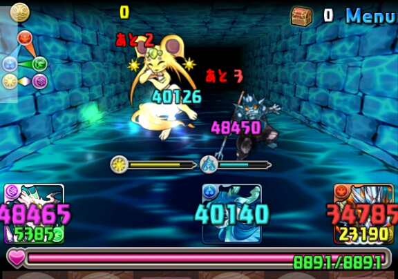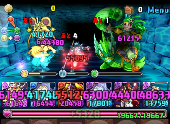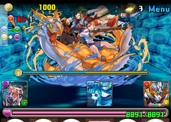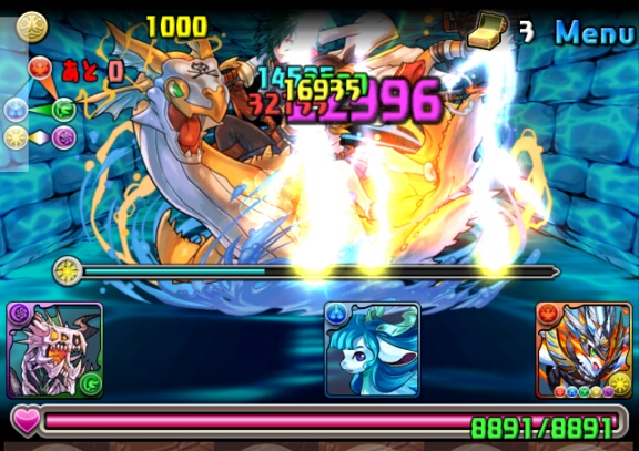 聞くところによるとこいつは、3ターンに一度の攻撃(9000くらい)で、回復をお邪魔ドロップに変換してくれる、ええ奴らしい。