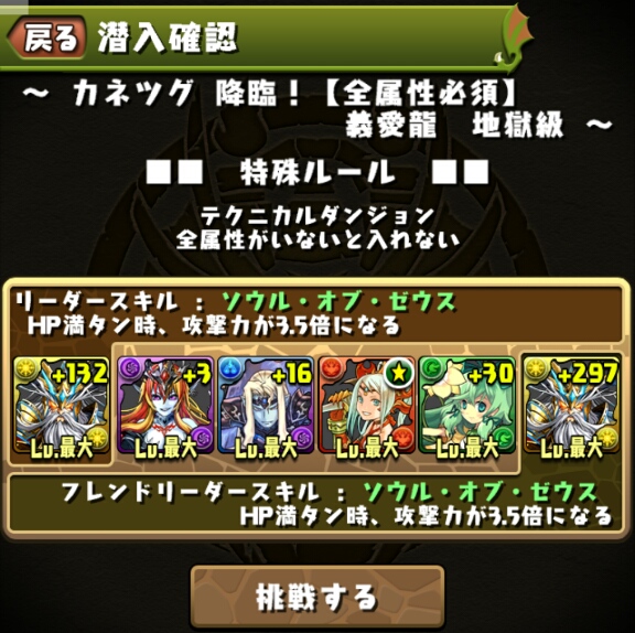 -パズドラ- カネツグ降臨を、ゼウスパで。(地獄級)