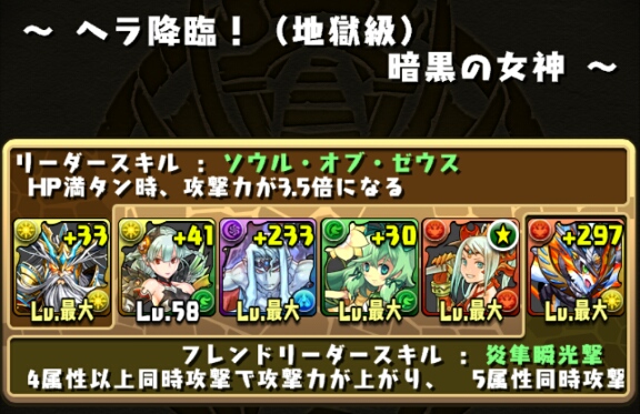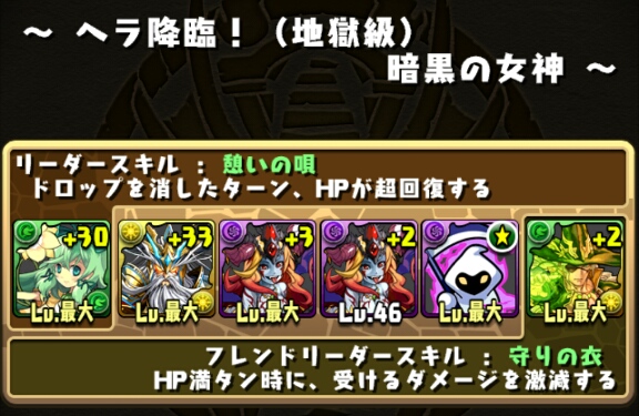 ハーデスの攻撃を耐えればいいので、ヘラと音符のしにがみ(スキルマ)を。