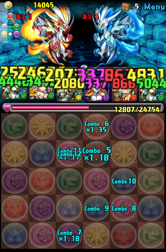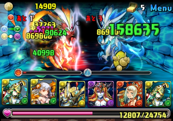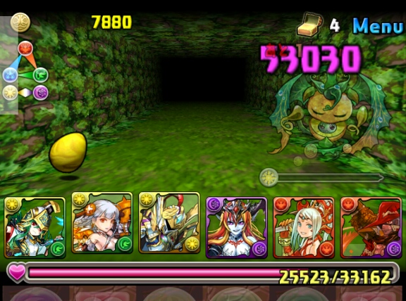 3階は左右の花とフルーツを倒して、たまドラbabyでスキル溜め。