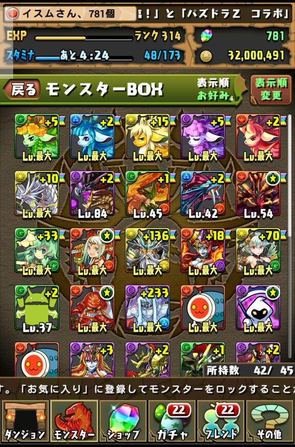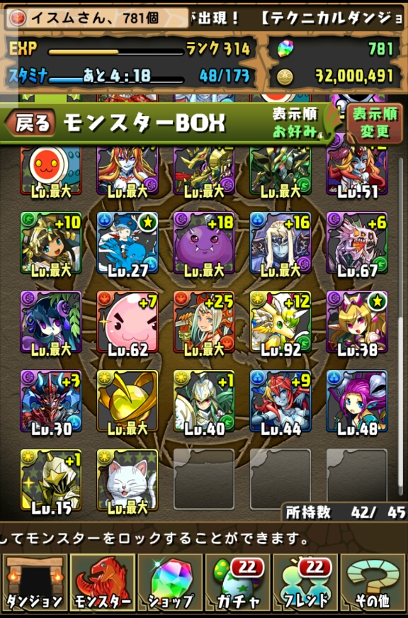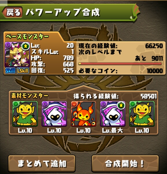 で、余ったモンスターはイースに合成してレベル上げ…