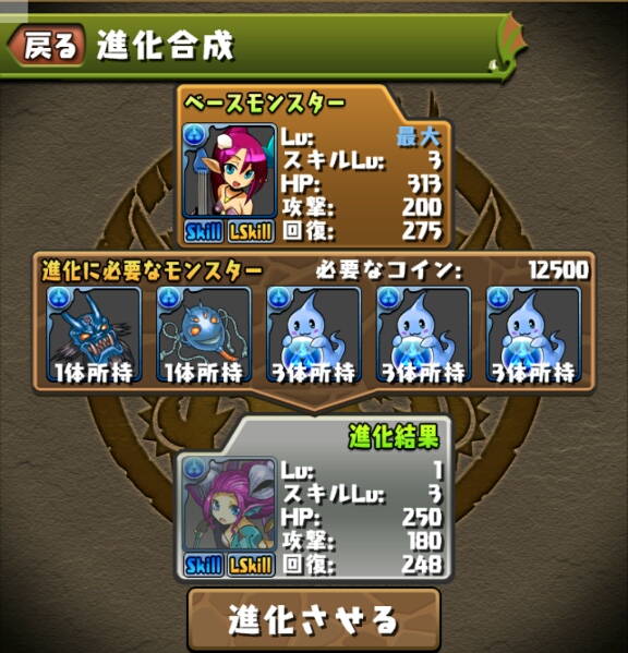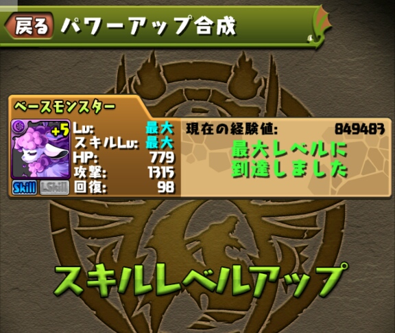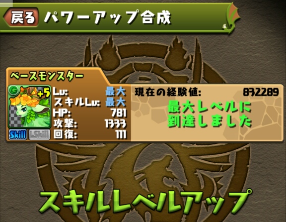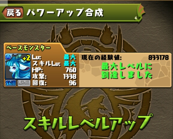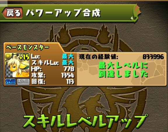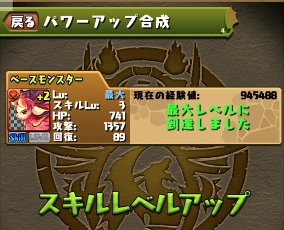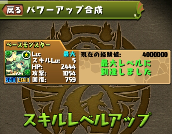 ブレススキルのスキルターンが短縮されたので、以前スキルマにした緑キマイラも再びスキル上げをしないといけない。。。