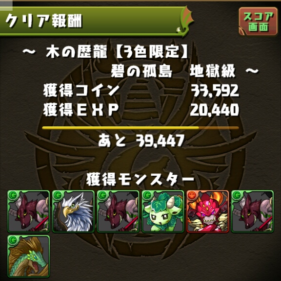 緑キマイラ落ちたけど、もうスキルマの緑キマイラあるからいらない………