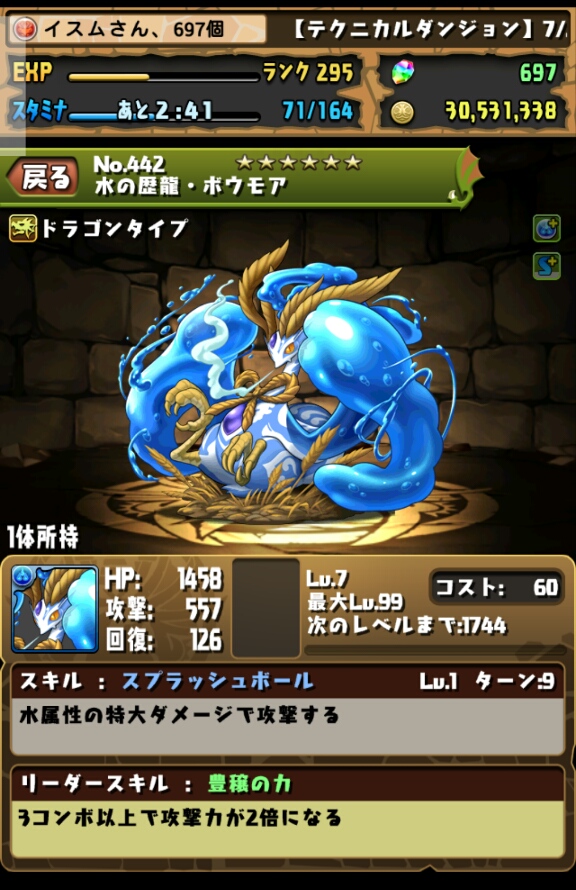 フェリオ?を進化させるために火曜ダンジョン超級に通ってた。