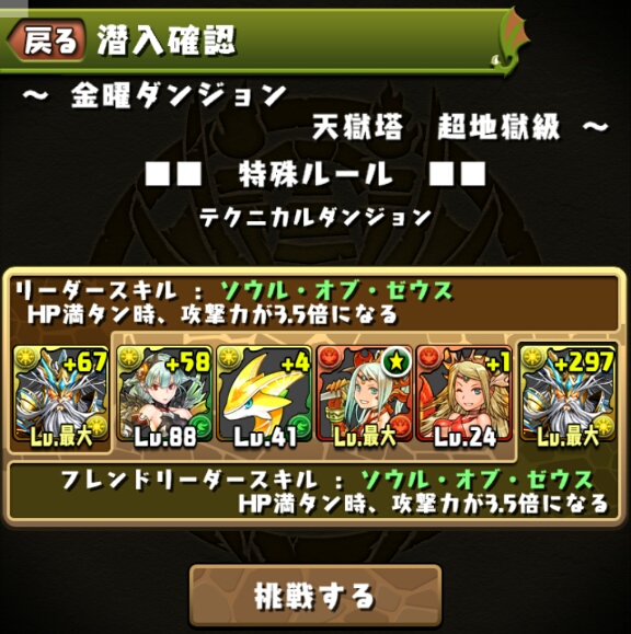 -パズドラ- 金曜ダンジョン、天獄塔超地獄級を(略)