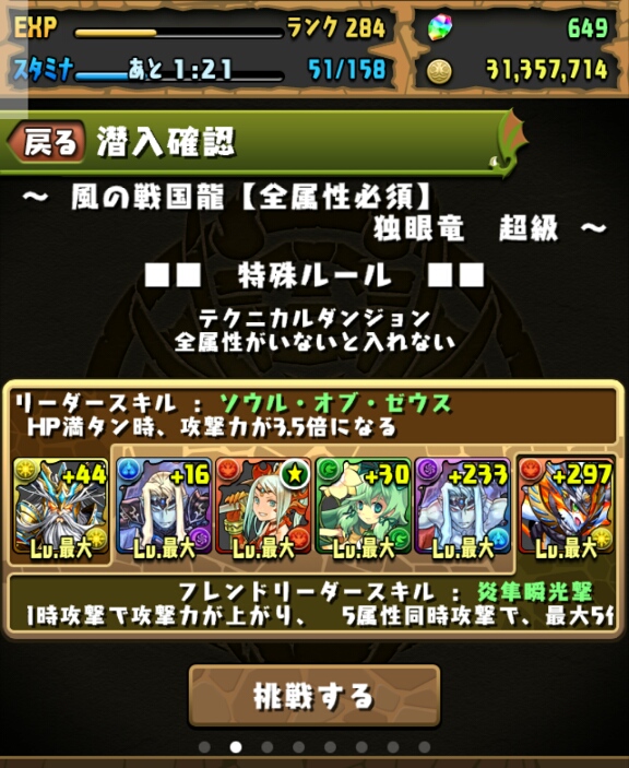 いつものヒュペリオ周回パーティーを少しいじっただけ。