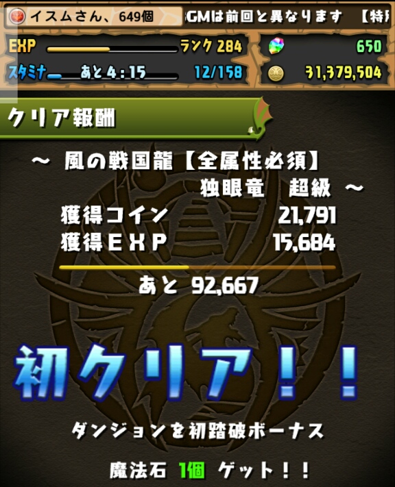 ガンホーフェスティバルの記念ダンジョンで手に入れたやつ。