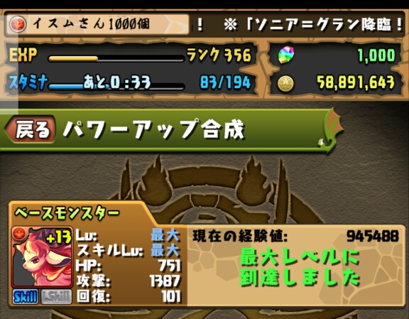2年前の1月に始めてから、最初はちょこちょこコンティニューとかスタミナ回復とかに使ってましたが、コツコツためていって、ついに1,000個に。