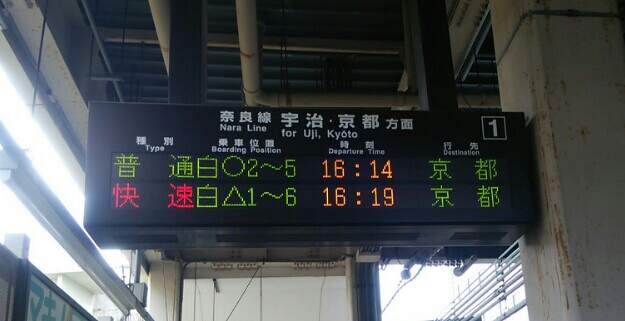 まぁ3つめの電車が遅れてるだけだし、いけるだろうと踏んで奈良線普通電車に。