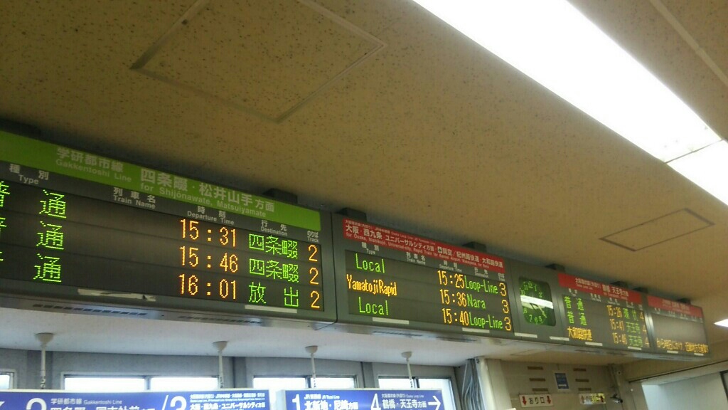 大和路快速奈良行きなんてあるんだなぁと思いつつ、外回りの終電の時間を確認。