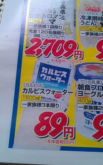 ②必ずカルピスウォーター1.5Lの値段を調べる。