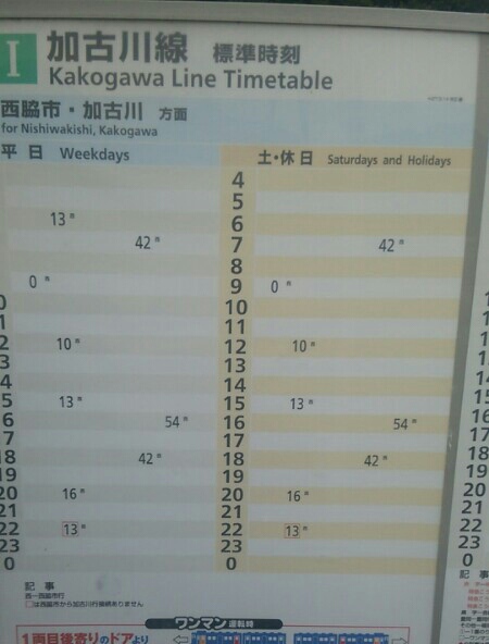 — イスムさん 8/11 (@Yakimeshi113_Mi) 2015, 8月 11加古川では改札を通さないと加古川線に行けない仕組みらしく、とりあえず駅員さんに「大回りです~」って言ったら「どうぞ~」って言われた。西脇市ヤバイな。1時間に○本ってレベルじゃない。 pic.twitter.com/OeF2BIraby