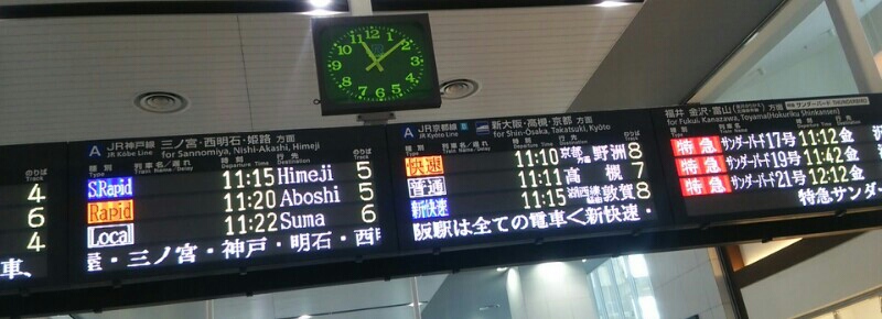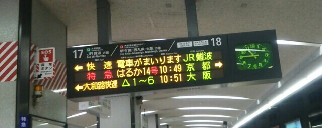 | 天王寺 | 10:51 | 大和路快速 | 大阪経由天王寺 | 11:08 | 大阪 | |