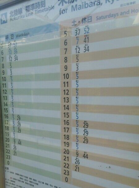 | 近江塩津 | 13:05 | 新快速 | 米原方面網干 | 14:22 | 草津 | |
