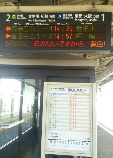 | 草津 | 14:57 | 普通 | 柘植 | 15:40 | 柘植 | |