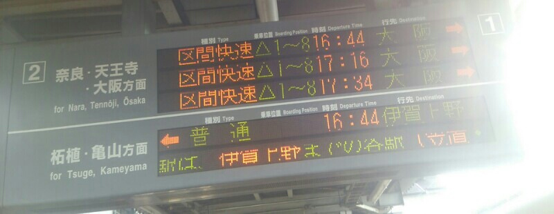 | 加茂 | 16:44 | 区間快速 | 大阪方面 | 16:52 | 木津 | |