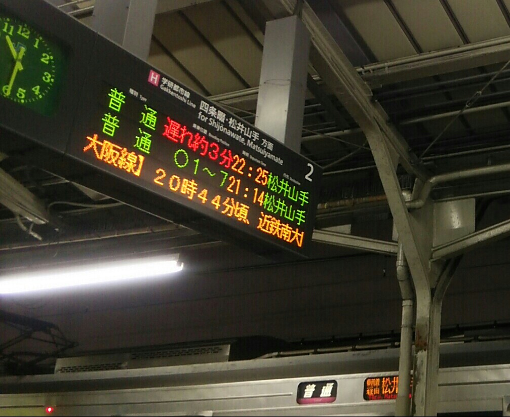 — イスムさん LINEスタンプ3つ発売中 (@Yakimeshi113) 2015, 8月 7〔14:31 みやこ路快速 京都〕棚倉待ち合わせの奈良行きが遅れてるせいで京都で新快速乗り遅れそう